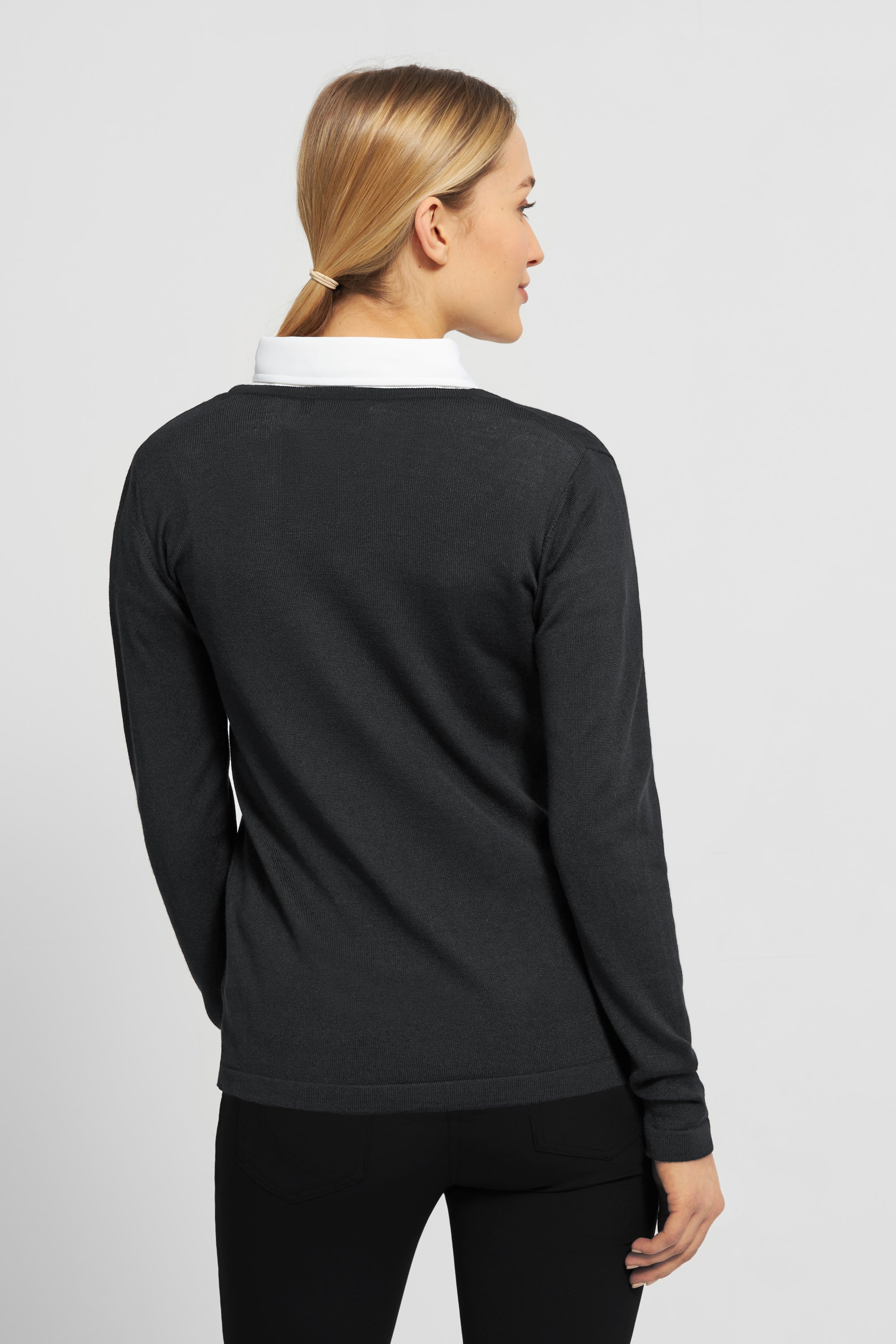 Supermjuk tröja gjord av 50% extra fin italiensk merinoull / 50% acyllic, med långa ärmar och v-ringning.