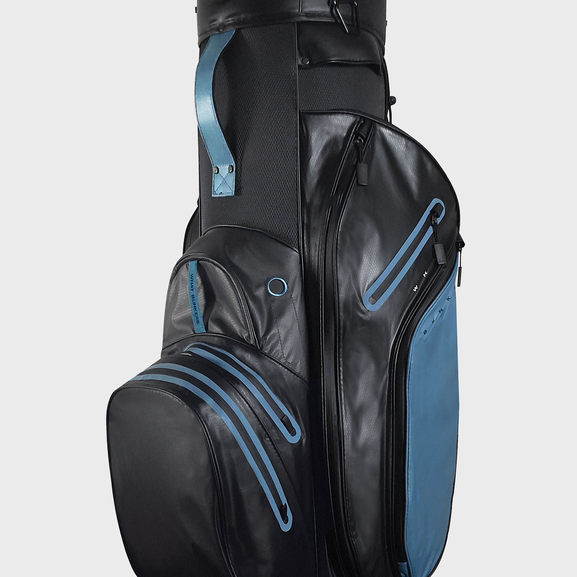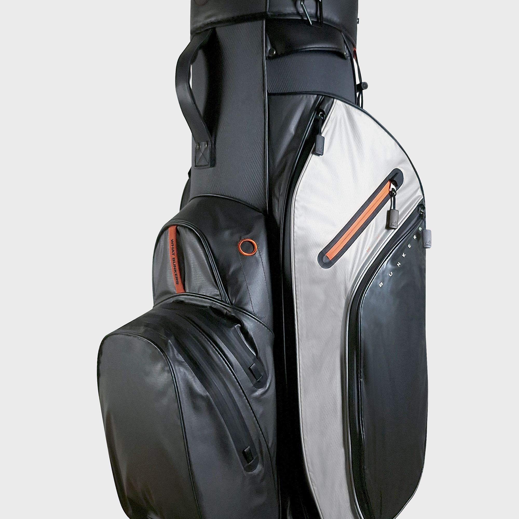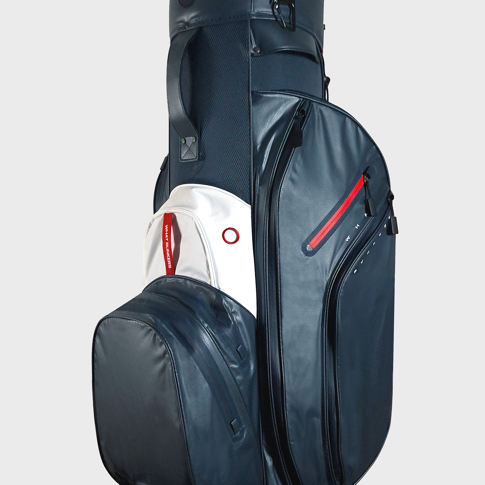 Denna golfbag är vattentät och designad med ett toppavdelare för organiserad klubbförvaring. Den har flera rymliga fickor för utrustning och tillbehör, inklusive en magnetisk ficka för snabb åtkomst till en avståndsmätare.