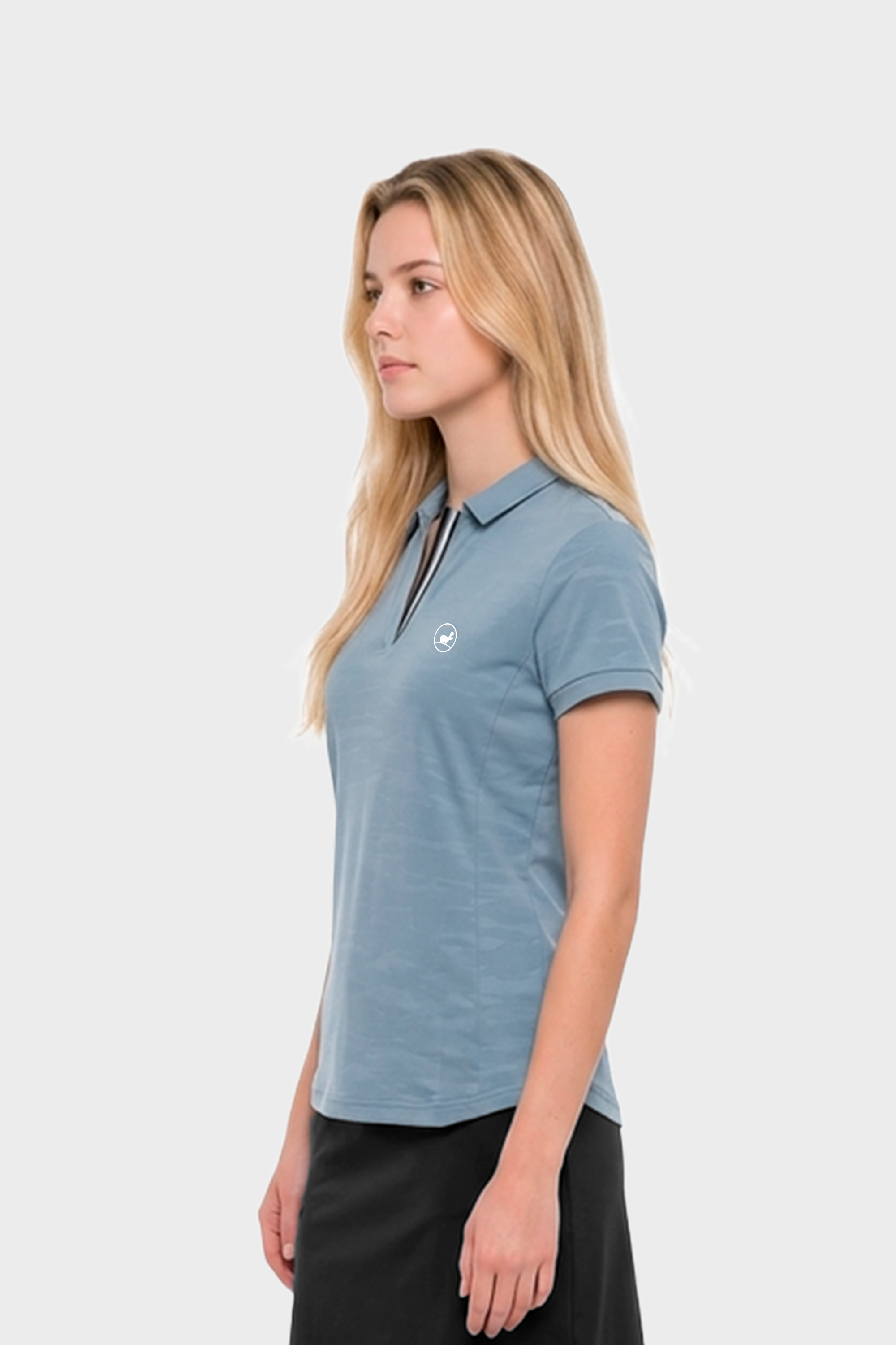 Elevate your style with the WBMaya Golf Polo Shirt in sky blue. The light textured design offers sophistication, while the striped rib placket detailing add a touch of elegance. Made with lightweight fabric for all-day comfort and breathability for the golfplaying lady.
